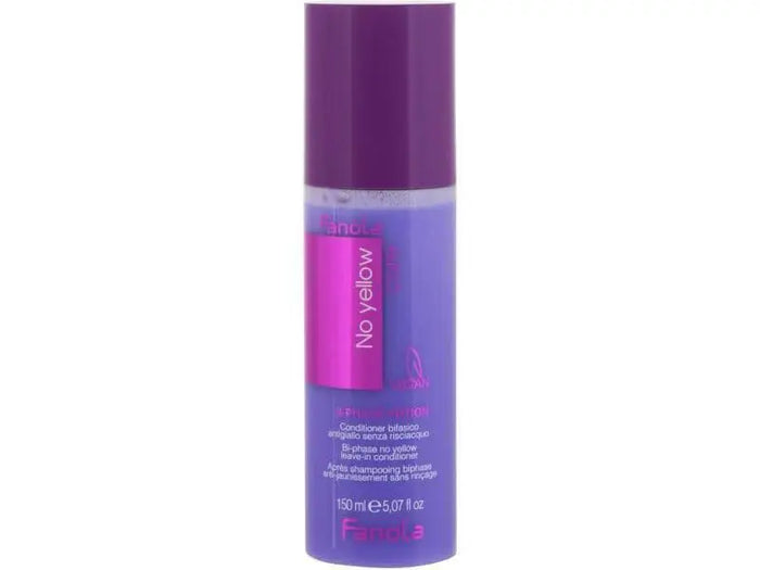 Fanola No Yellow 2-Phase Potion is a salon-quality leave-in conditioner designed for blonde and lightened hair. It neutralizes brassiness with professional violet pigments while nourishing the strands with silk proteins, leaving hair cooler-toned, softer, and more manageable. The Fanola No Yellow leave-in conditioner is essential for maintaining the vibrancy of blonde hair, making it a must-have in your hair care routine.