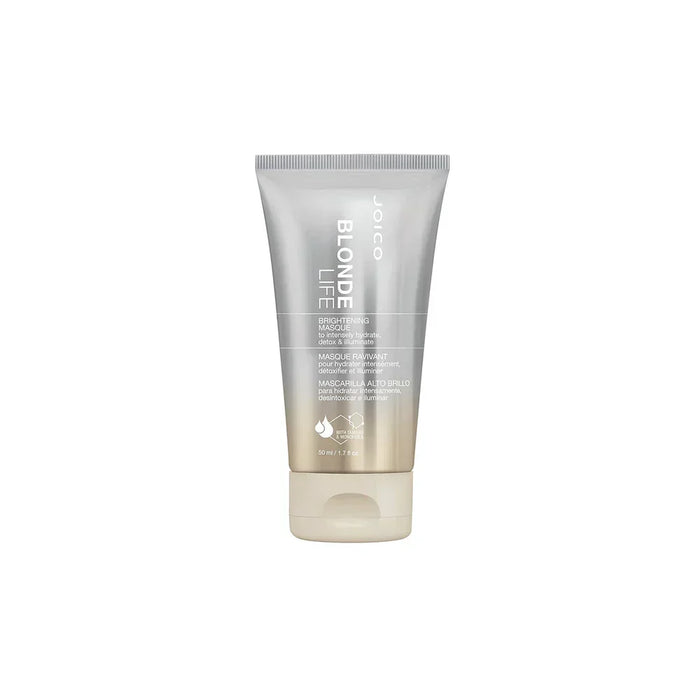 Joico Blonde Life Brightening Mask 150ml is a violet-pigment conditioning treatment that brightens blonde hair while delivering lasting hydration. Formulated with violet pigments and jojoba oil, it neutralizes brass and revives dull, processed strands for a healthier, more radiant blonde.