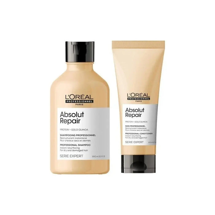 The L'Oreal Absolut Repair Shampoo & Conditioner Bundle is a premium hair care duo designed to deeply repair damaged strands and restore radiant shine. This damage-repair set targets heat styling, chemical treatments, and environmental stressors to revitalize dull hair. Perfect for all hair types seeking salon-strength repair at home. The L'Oreal Absolut Repair Shampoo & Conditioner Bundle is an essential choice for anyone looking for a professional hair repair shampoo.