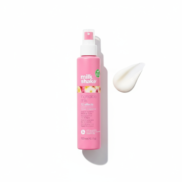 Milkshake Incredible Milk Flower Fragrance 150ml is a versatile hair styling product designed for all hair types. It delivers intense hydration and luminous shine from a nourishing milk-based formula, while infusing the hair with an enchanting florals scent that elevates your daily routine. This lightweight spray is perfect for everyday styling, detangling, and long-lasting softness. The Milkshake Incredible Milk Flower Fragrance is an essential spray hair detangler that enhances manageability and shine.