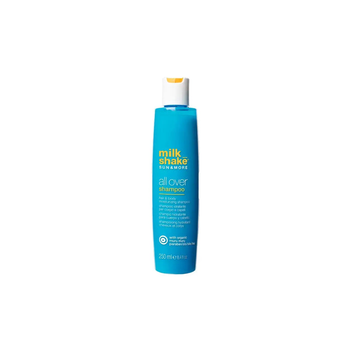 Milkshake Sun & More All Over Shampoo 250ml revitalizes and protects normal hair with hydrolyzed quinoa, argan oil, and passionfruit seed oil. This lightweight shampoo cleanses while delivering moisture and nourishment, making it ideal for outdoor enthusiasts who want healthy, resilient hair after sun and activity.