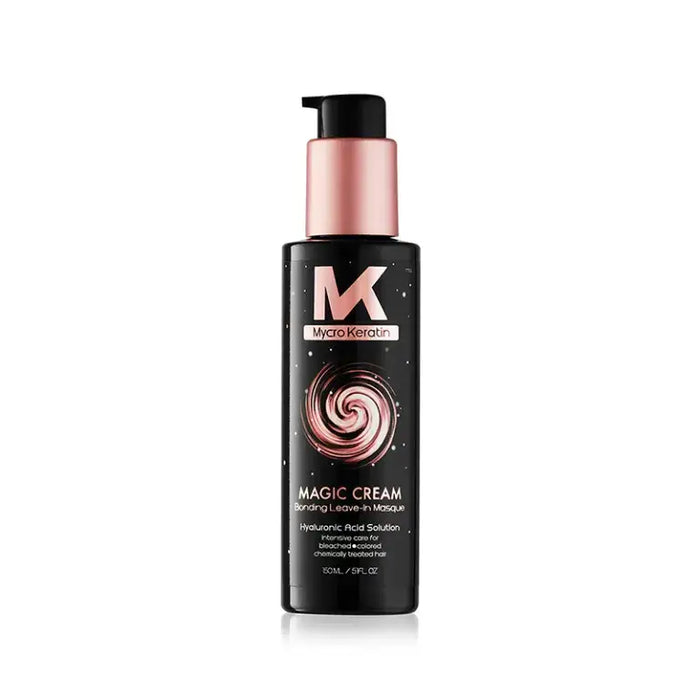 Mycro Keratin Magic Cream 150ml is a bonding leave-in treatment that targets chemically treated hair. It blends keratin, hyaluronic acid, and protein peptides to repair damage, reinforce bonds, and restore smoothness, shine, and resilience for healthier, easier-to-manage hair.