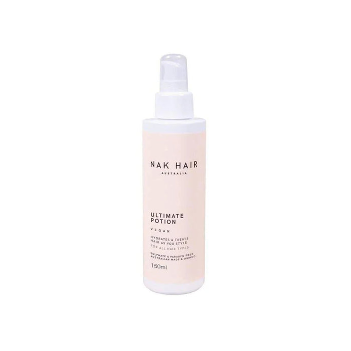 Nak Signatures Ultimate Potion 150ml is a universal hair treatment designed to deliver deep hydration and repair for all hair types. Harnessing advanced molecular technology and nourishing ingredients, it revitalizes dry, damaged, and frizzy locks while delivering lasting softness and shine. This potent potion fits seamlessly into any routine, offering high-performance care in a lightweight, manageable formula. The Nak Signatures Ultimate Potion is perfect for anyone looking to improve their hair's health and appearance.