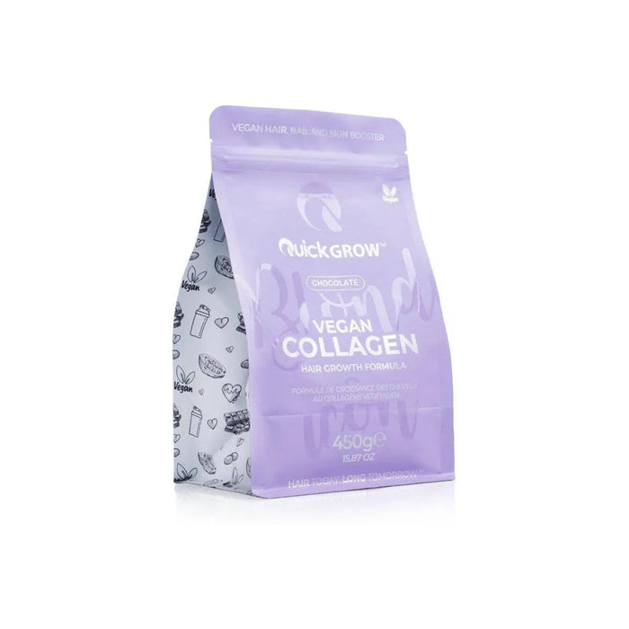 - Collagen Support – a vegan collagen-support matrix formulated to support your body’s natural collagen production for stronger, more resilient skin, hair, and nails. Incorporating Quick Grow Chocolate Vegan Collagen into your routine can significantly boost collagen for skin, hair, and nails.