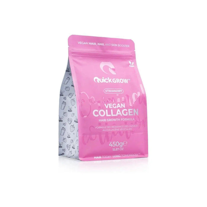 - Step 1 – Add one scoop (serving) of Quick Grow Strawberry Vegan Collagen 450G to 8–12 oz of water, plant-based milk, or your favorite beverage. Stir until fully dissolved. This step is crucial for ensuring you get the full benefits of the vegan collagen supplement.