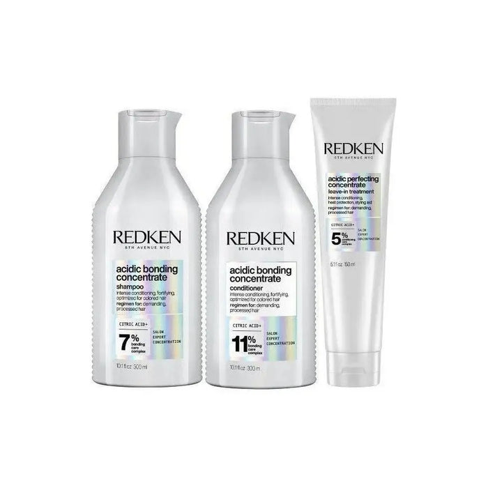 The Redken Acidic Bonding Gift Set is Redken’s most concentrated hair repair system, designed to repair weakened bonds, protect against breakage, and restore damaged hair. This trio of cleansing, conditioning, and leave-in treatment delivers salon-grade bond restoration at home, suitable for all hair types and textures. The Redken Acidic Bonding Gift Set is perfect for anyone looking to enhance their hair care routine with effective bond restoration shampoo and conditioner.