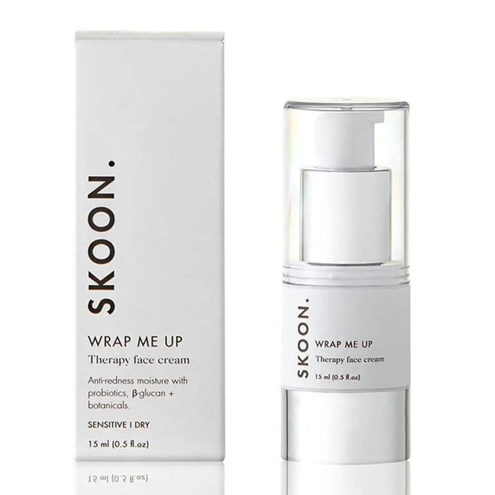 SKOON. WRAP ME UP Therapy Face Cream 15ml is a probiotic-rich moisturizer crafted for sensitive skin. It nourishes, calms redness, and supports a balanced complexion through quality botanical extracts, delivering gentle daily care you can feel. This SKOON Therapy Face Cream is an excellent choice for anyone seeking a probiotic moisturizer for sensitive skin.