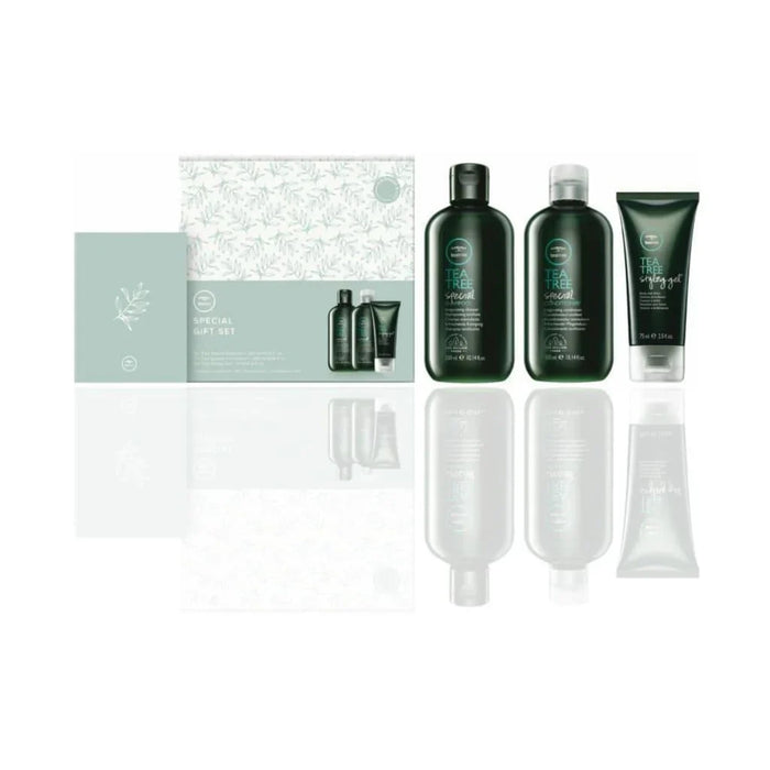 - Invigorating Scalp — A cooling, tingling sensation that awakens the scalp and promotes a healthy environment for stronger hair. This makes the Tea Tree Special Gift Set an excellent option for those seeking relief from scalp irritation.